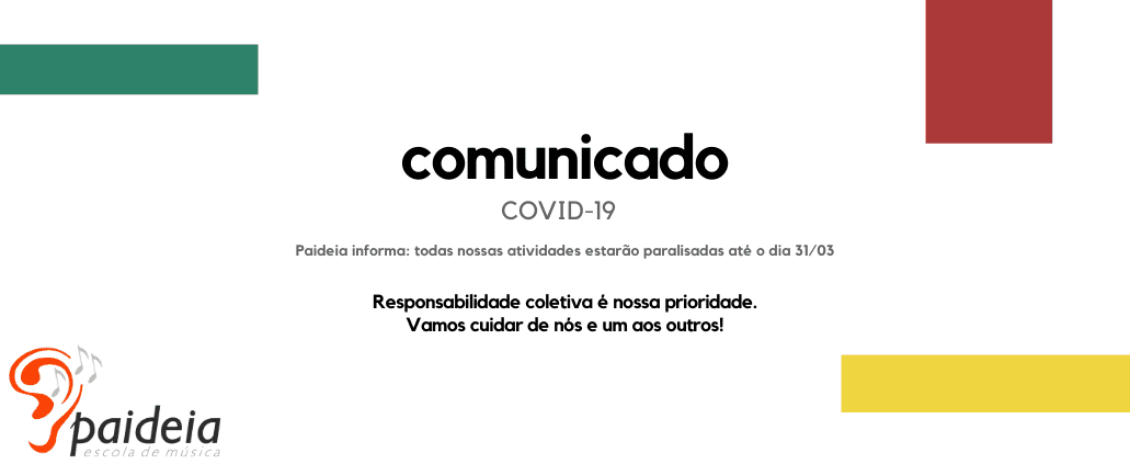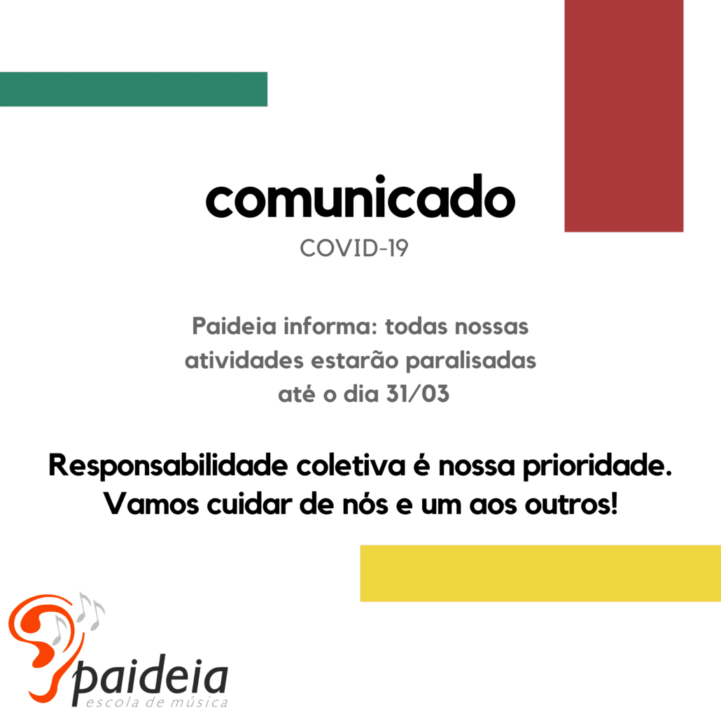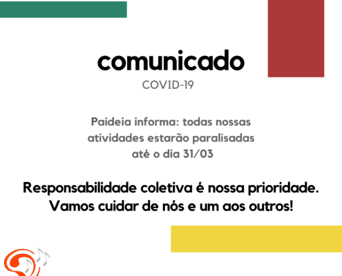 Estamos passando por um momento mundialmente preocupante. O COVID-19 continua ultrapassando barreiras. Por este motivo, decidimos paralisar as aulas na Paideia do dia 18/03 até o dia 31/03, evitando, com isso, a aglomeração e a circulação de pessoas e reduzindo a cadeia de transmissão do vírus.
