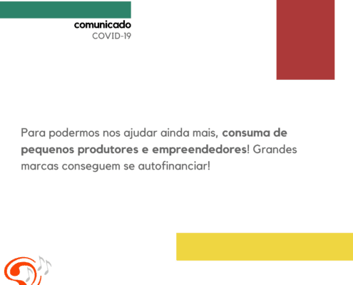 Lembre-se que grandes marcas e redes tem condições de se autofinanciar em períodos como o de agora mas pequenos produtores e empreendedores terão mais dificuldades. Então encorajamos todos a consumir e divulgar produtos de pequenos produtores. Cada ajuda será sempre bem-vinda!!! Acreditamos e vivemos através da responsabilidade coletiva!