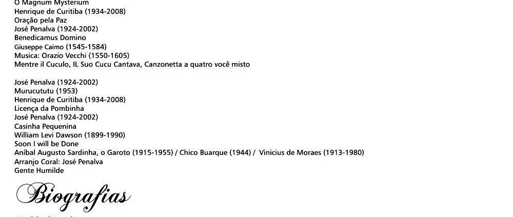 ℘ Grupo vocal dedicado à música camerística de todas as épocas, com ênfase ao canto “a capella” fundado por José Penalva e regido por Bruno Spadoni que tem sua sede na Paidéia Escola de Música!