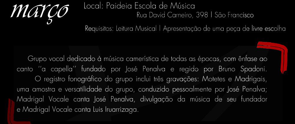 Será dia 20 de março (segunda-feira), às 20h, na Paideia Escola de Música.