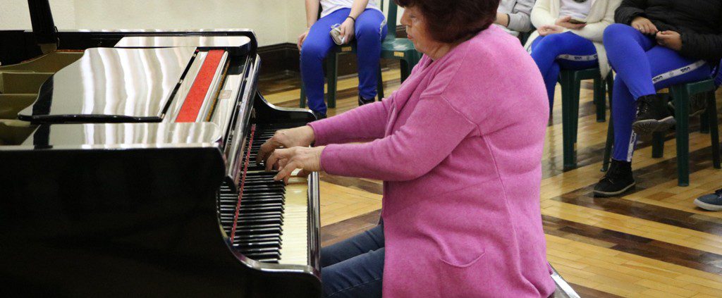 Os alunos puderam apreciar a pianista tocando As Estações, de P. Tchaikovsky, Os Ponteios, de C. Guarnieri e 12 dos 24 Prelúdios Op. 28, de F. Chopin.